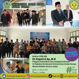 Muara Bulian – Universitas Graha Karya Muara Bulian (UGK-MB) menggelar pelantikan dan pengambilan sumpah jabatan bagi 21 pejabat baru di...